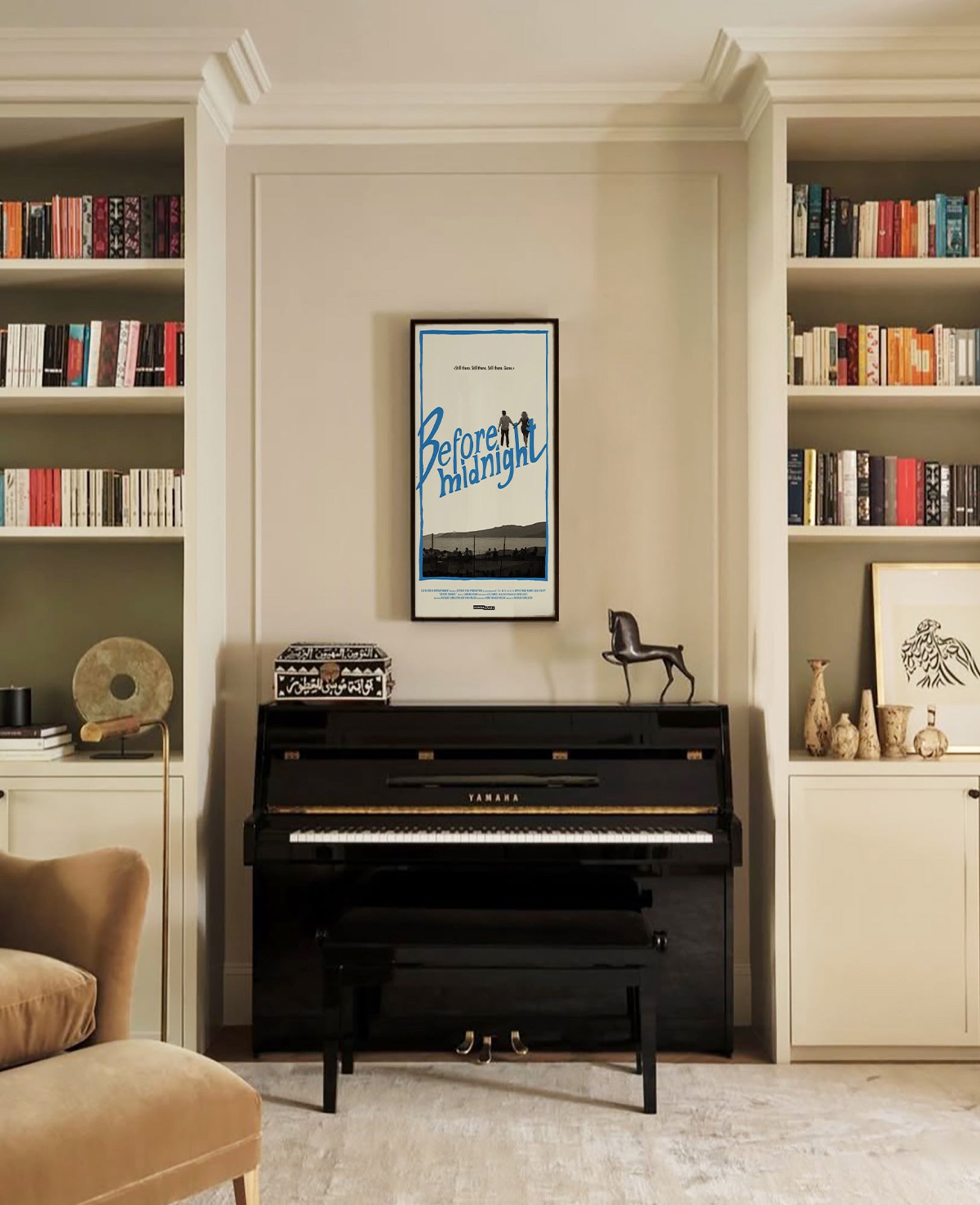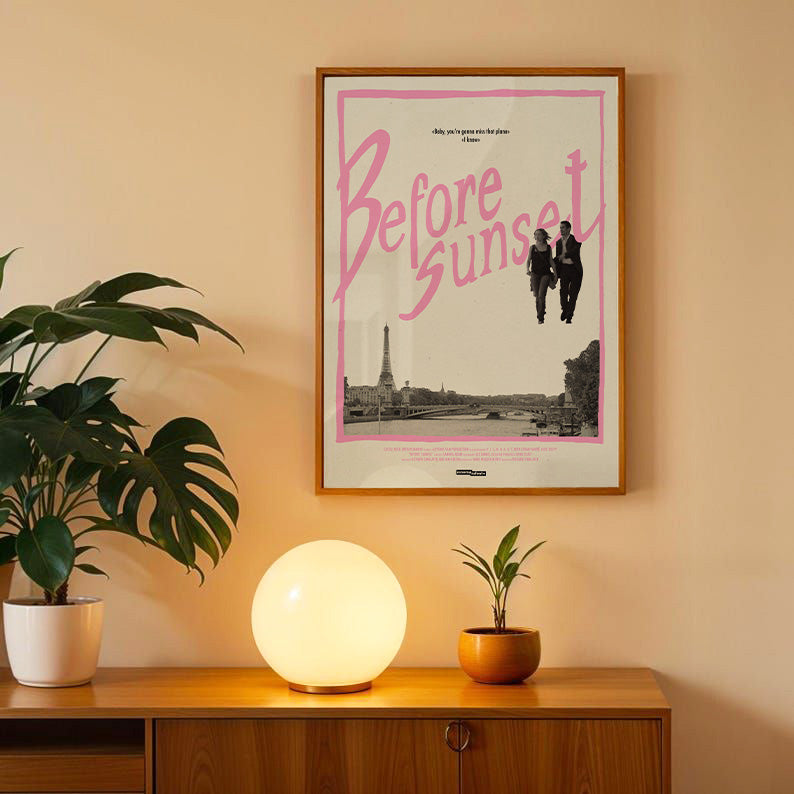 Ogni poster è pensato come un frammento temporale distinto: il primo celebra la notte a Vienna in Before Sunrise, il secondo il ricongiungersi a Parigi in Before Sunset, e il terzo esplora la profondità della relazione nel tempo in Before Midnight. Non sono semplici illustrazioni, ma visioni evocative che richiamano le atmosfere — le luci, i passi, i silenzi — che rendono questa trilogia qualcosa di più di una storia d’amore.