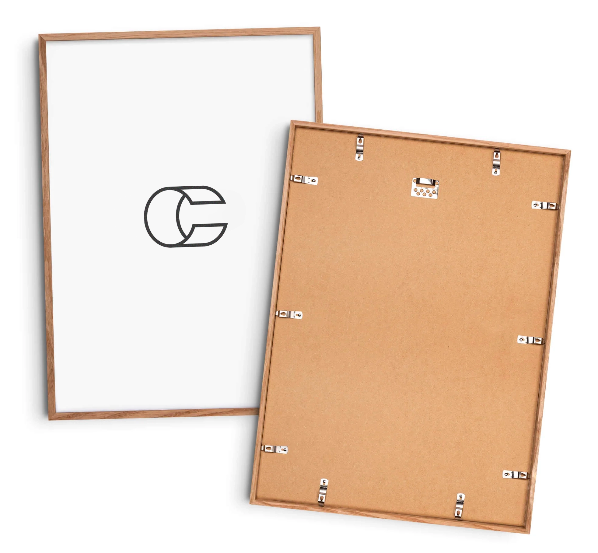 Le nostre cornici sono realizzate in legno di quercia con un design minimalista e contemporaneo (spessore dell'asta 1,5cm x1,5cm). Il vetro è costituito da un vetro acrilico di alta qualità leggero e infrangibile per una casa sicura.